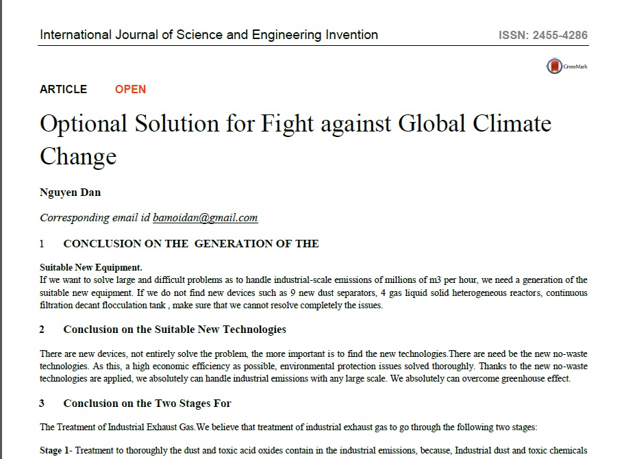 Dan, N. 2020. Optional Solution for Fight Against Global Climate Change. International Journal of Science and Engineering Invention. 5, 01 (Jan. 2020), 01 to 03.